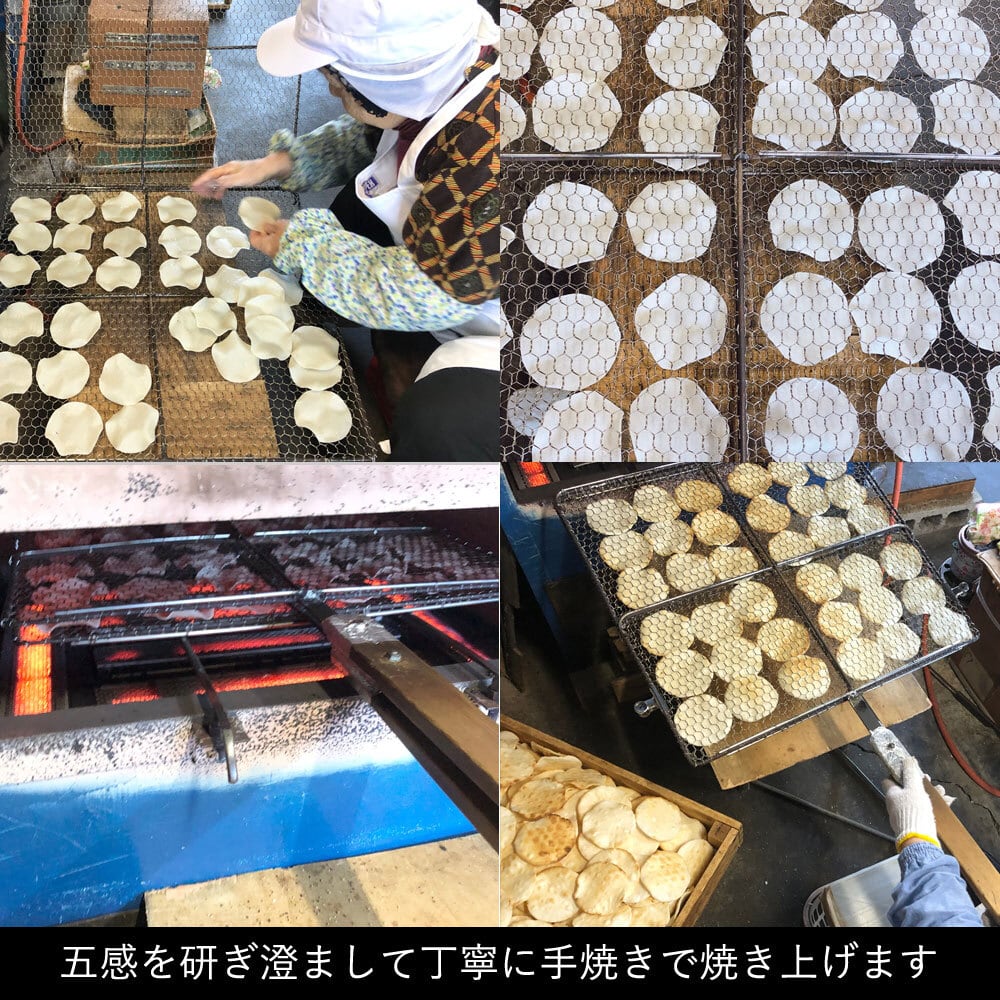 手焼きならではのほどよい焼き加減が、香ばしさを引き立てます。職人が一枚ずつ手間暇かけて丹精込めて焼き上げており、その味わいはひとつひとつ丁寧に作られた「手仕事」の証。