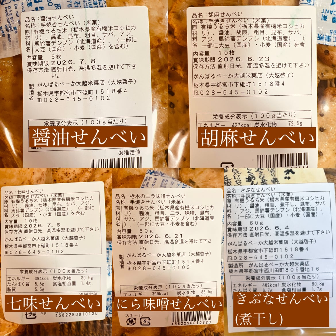 がんばるべーか大越米菓店の手焼きせんべいを気軽に楽しめる、60サイズの詰め合わせセットです。