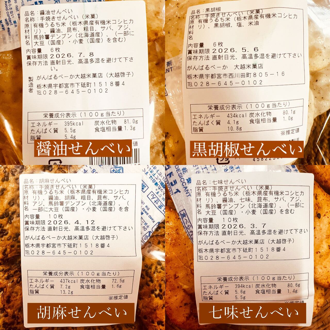 ☑︎ 黒胡椒せんべいは、米油を使用しております。他のお煎餅は油を使用しておりません。