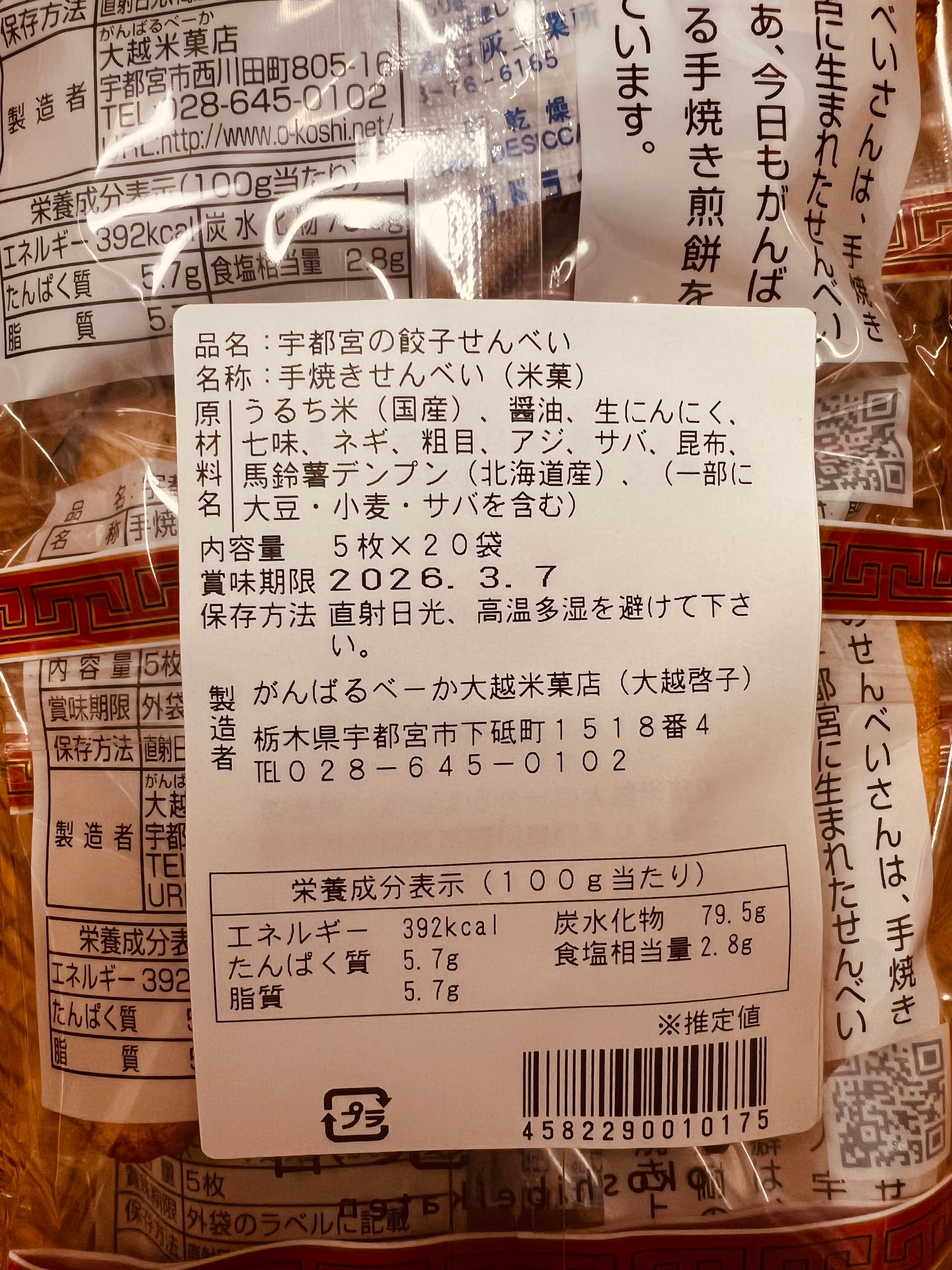 醤油せんべい、煮干し味の黄ぶなせんべい、餃子せんべい、胡麻せんべい、七味せんべいの5種7袋入りで、色んなお味が楽しめる人気のセットです。
