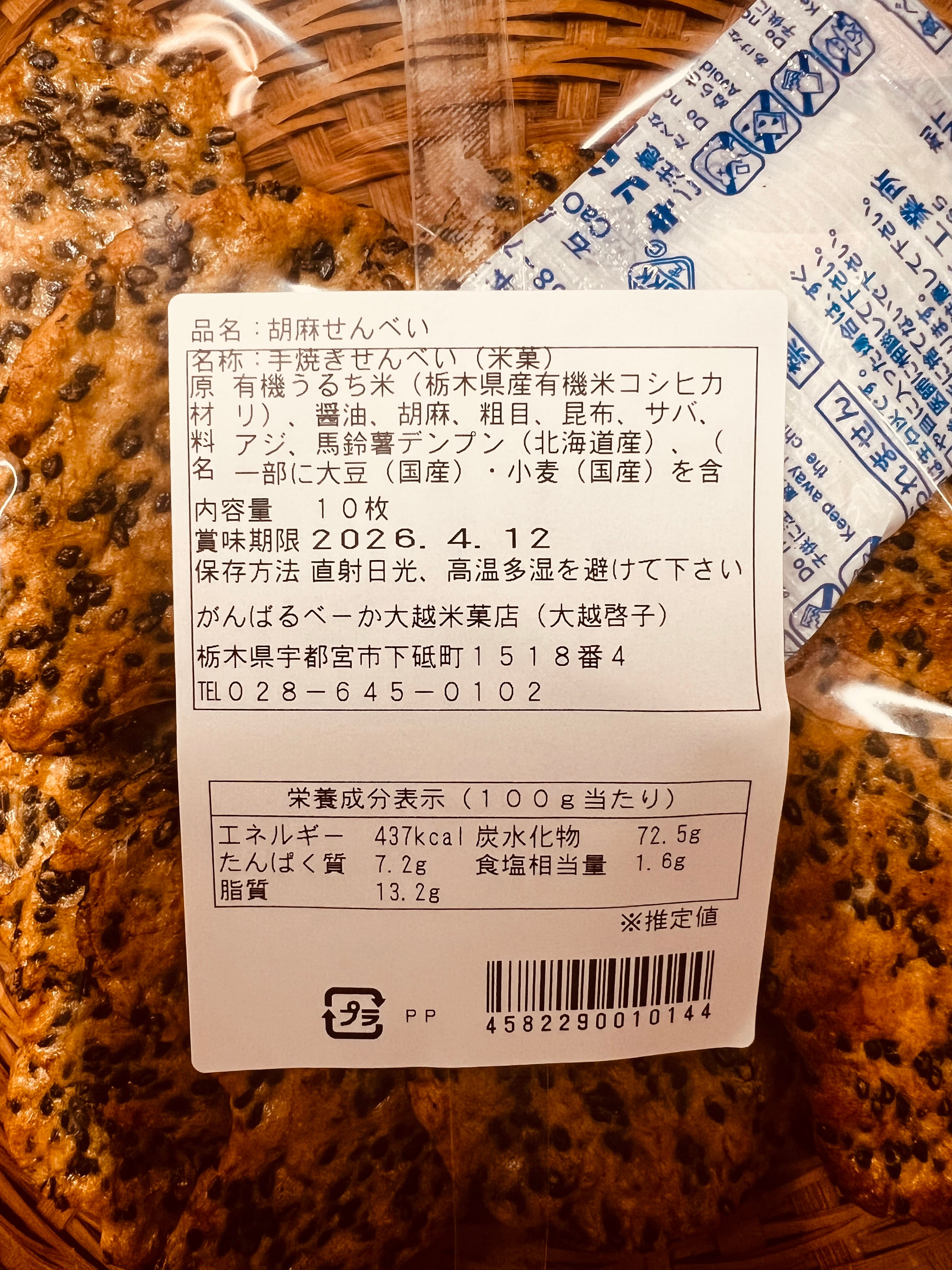 手作りで一枚一枚焼き上げた、香ばしい黒胡麻せんべいは、黒胡麻の香り高い風味とサクサクの食感が絶妙にマッチして、一度食べたらやみつきになる美味しさです。